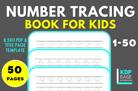Ready to Upload / Print Number Tracing Book For Kids & Toddlers. It comes with number tracing pages from 1 to 50 - Source file included. (Note: Don't purchase, If you've already purchased this from my Creative Fabrica store)