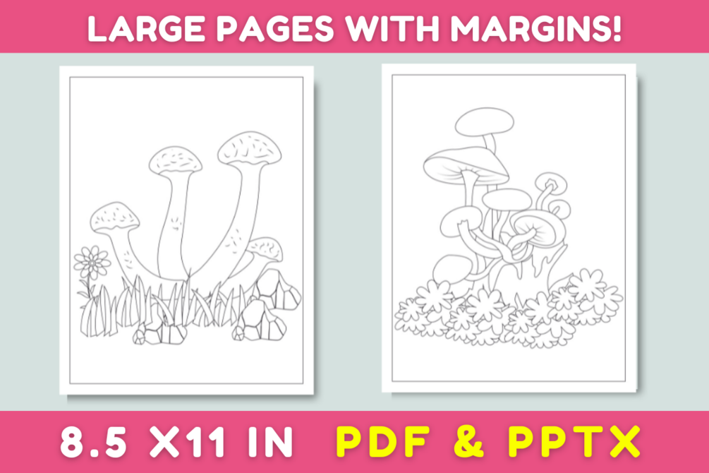 Coloring Book with 35 Mushroom Coloring Pages (Large Size 8.5 x 11 Inches). Plus Source Files